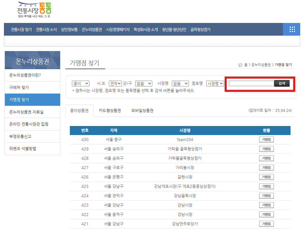Q3. 참여 가능한 전통시장은 어디서 확인할 수 있나요?