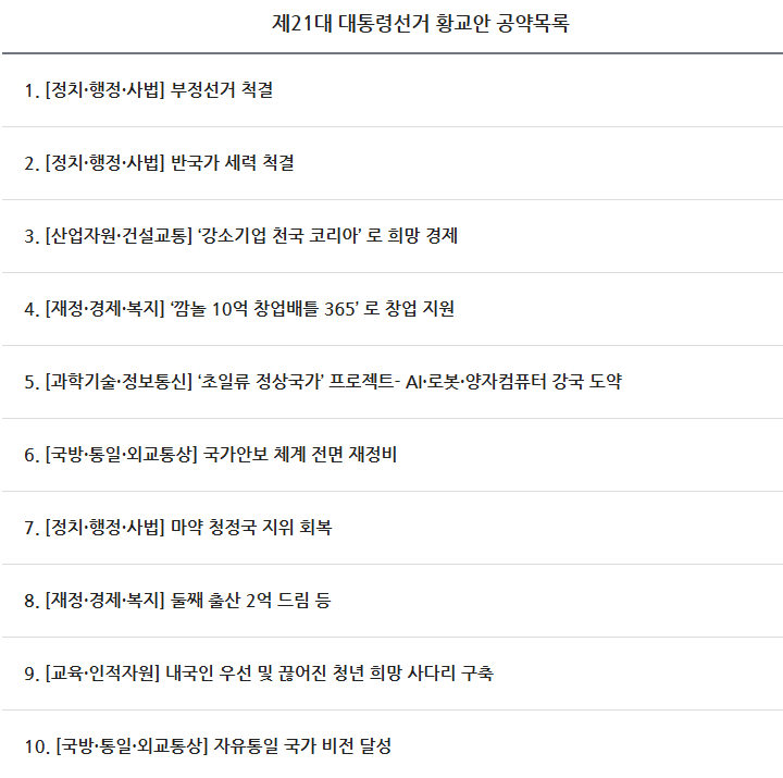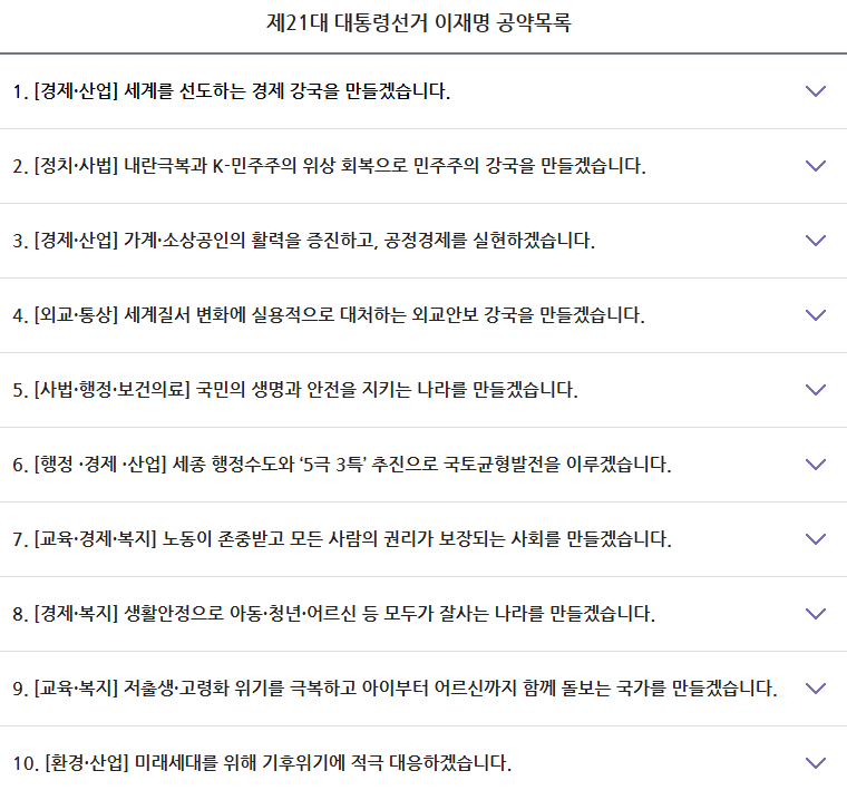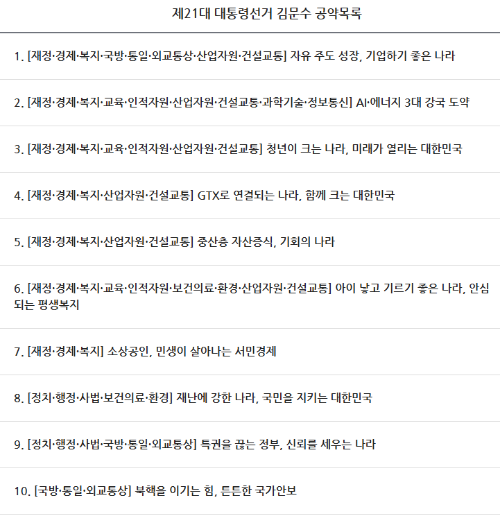 경제, 정치, 사회, 국방, 외교 등 각 분야에서의 변화를 목표로 하는 공약들은 유권자들에게 큰 관심을 받고 있습니다.