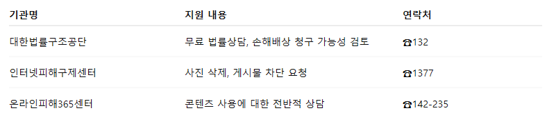 화면 캡처, 게시 시간, URL 등을 확보한 후, 사진을 게시한 주체에게 삭제 요청을 먼저 하는 것이 좋습니다.