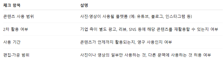 기업 측이 별도 광고, 리뷰, SNS 등에 해당 콘텐츠를 재활용할 수 있는지 여부