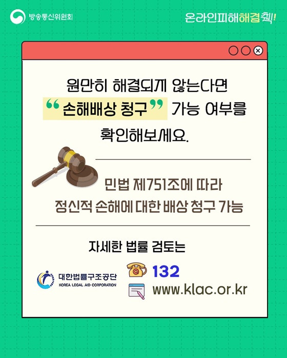이후에도 조치가 이뤄지지 않으면 방심위나 법률구조공단을 통한 공식 절차를 밟는 것이 바람직합니다.
