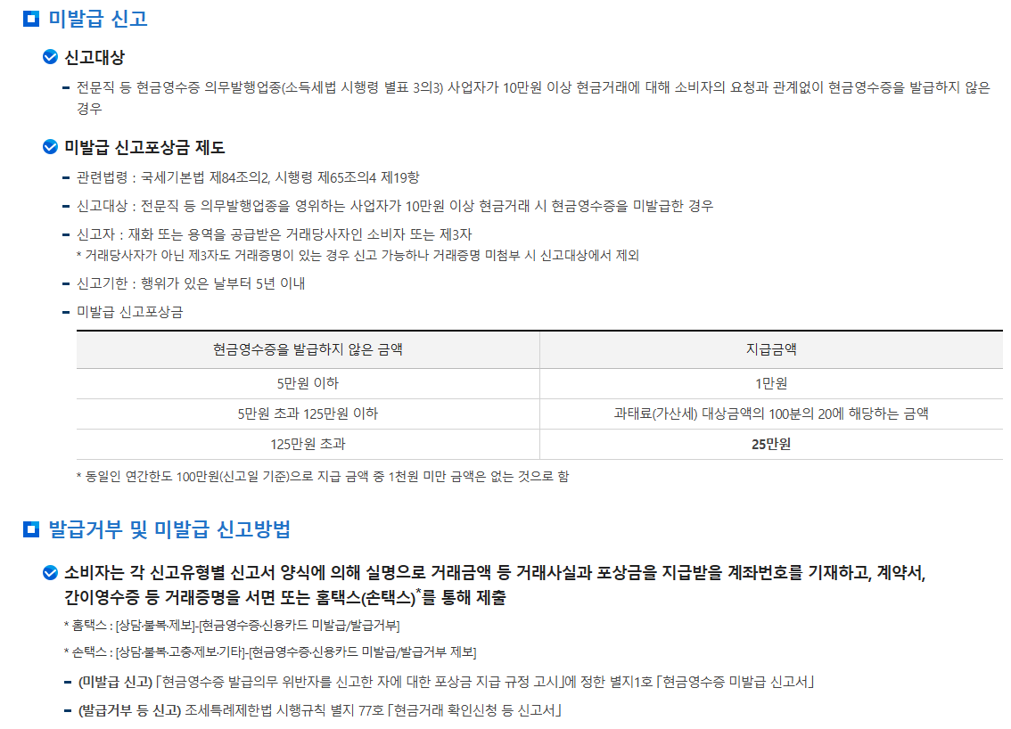 국세청에서는 현금영수증 발급을 회피하거나, 발급하지 않는 업소에 대해 지속적으로 감시하고 있으며, 신고할 경우 포상금 지급도 가능합니다.