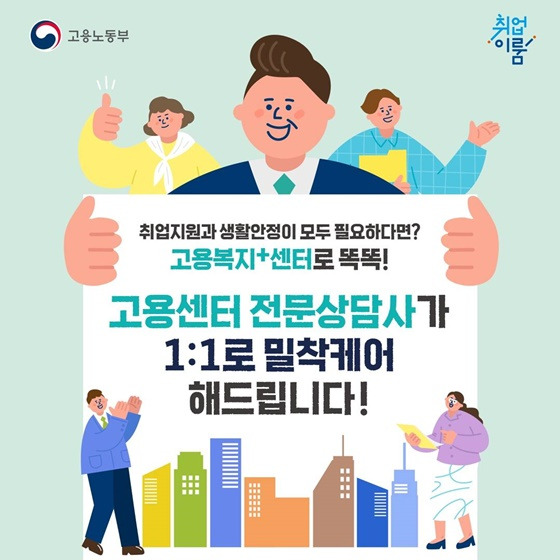 고용복지⁺센터는 혼자서 헤쳐 나가기 어려운 구직 여정에 동반자 역할을 하는 곳입니다.