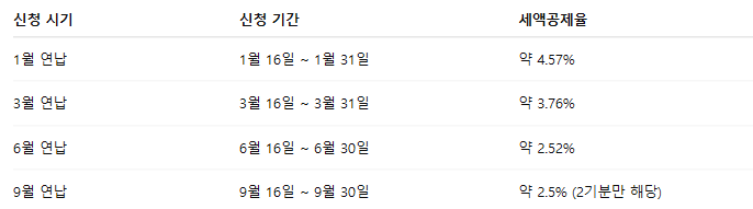 만약 1월을 놓쳤더라도 다른 분기라도 신청하면 일정 부분 세액 공제를 받을 수 있으므로 신청 자체를 포기하지 않는 것이 좋습니다.