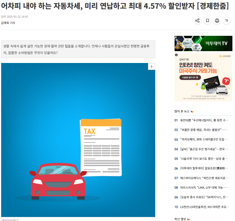 📍2,000cc 차량: 약 52만 원 세금 중 1월 연납 시 약 24,000원 절감