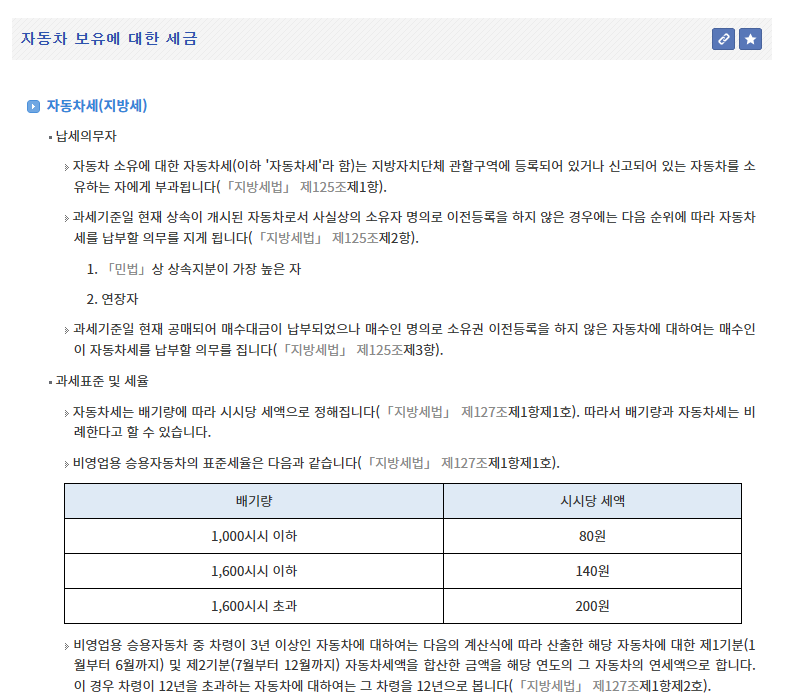 자동차세는 차량을 소유하고 있는 경우 부과되는 지방세입니다.