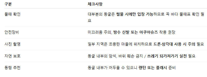 동굴 해변 여행 전 꼭 알아둘 사항