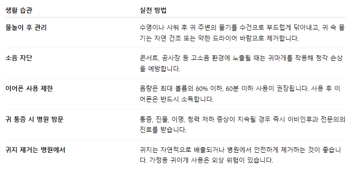 무심코 지나칠 수 있는 귀의 습기, 압력 변화, 소음 노출 등이 염증이나 손상을 유발할 수 있기 때문입니다.