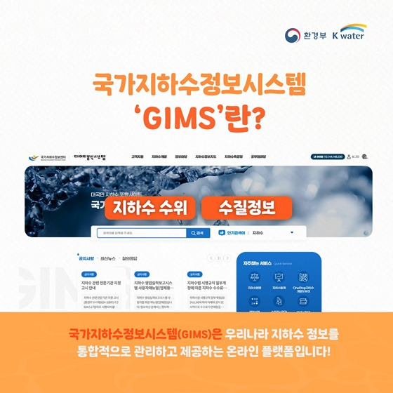 지금부터 소개할 국가지하수정보시스템(GIMS)는 지하수에 대한 방대한 정보를 한눈에 확인할 수 있는 대표 플랫폼입니다.