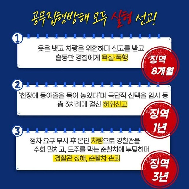 ① 경찰에게 폭언·폭행 → 징역 8개월