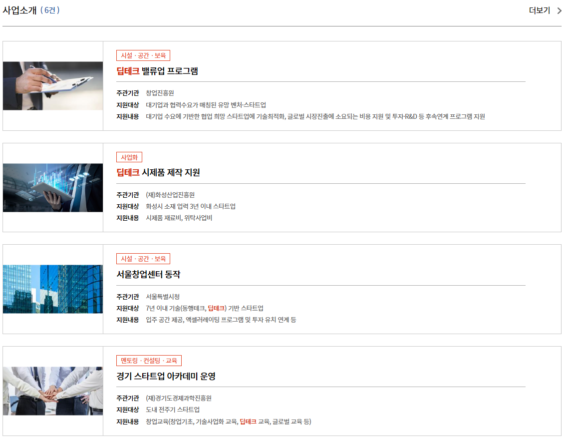 딥테크 창업기업이라면 다음과 같은 정부 지원 프로그램과의 연계도 고려할 수 있습니다.