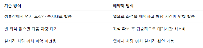 예약제를 통해 대기 인원을 분산시키고, 승객과 버스 운전기사 모두의 스트레스를 경감할 수 있습니다.