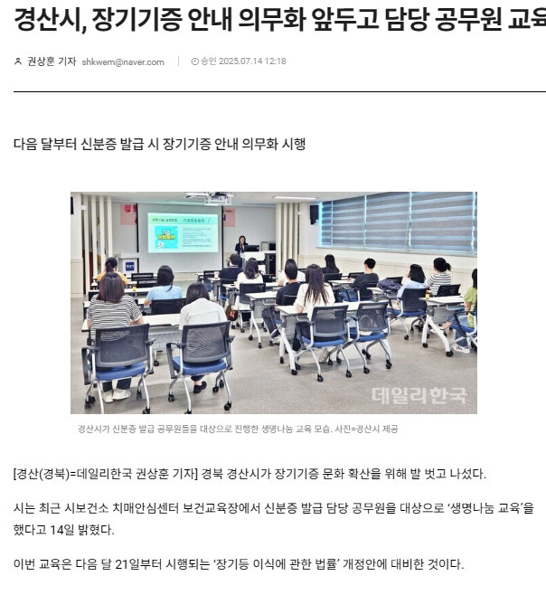 신분증 발급 시 장기기증 등록 안내 의무화 ➡️ 생명나눔 문화 확산