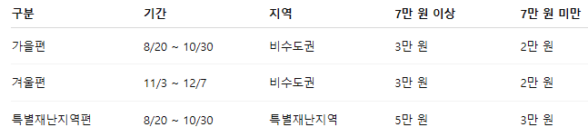 단, 가을편과 특별재난지역편은 중복 발급이 불가합니다.