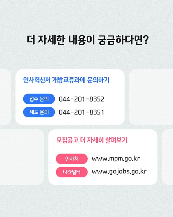 인사혁신처 개방교류과(접수문의 044-201-8352 등).