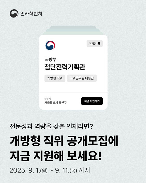 이번 2025년 9월 개방형 직위 공개 모집은 전문성을 가진 민간실무자와 공직 내 인재가 공정하게 경쟁할 수 있는 기회입니다.
