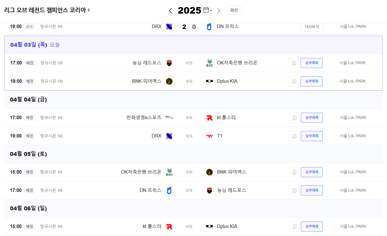 2025년 LCK 일정