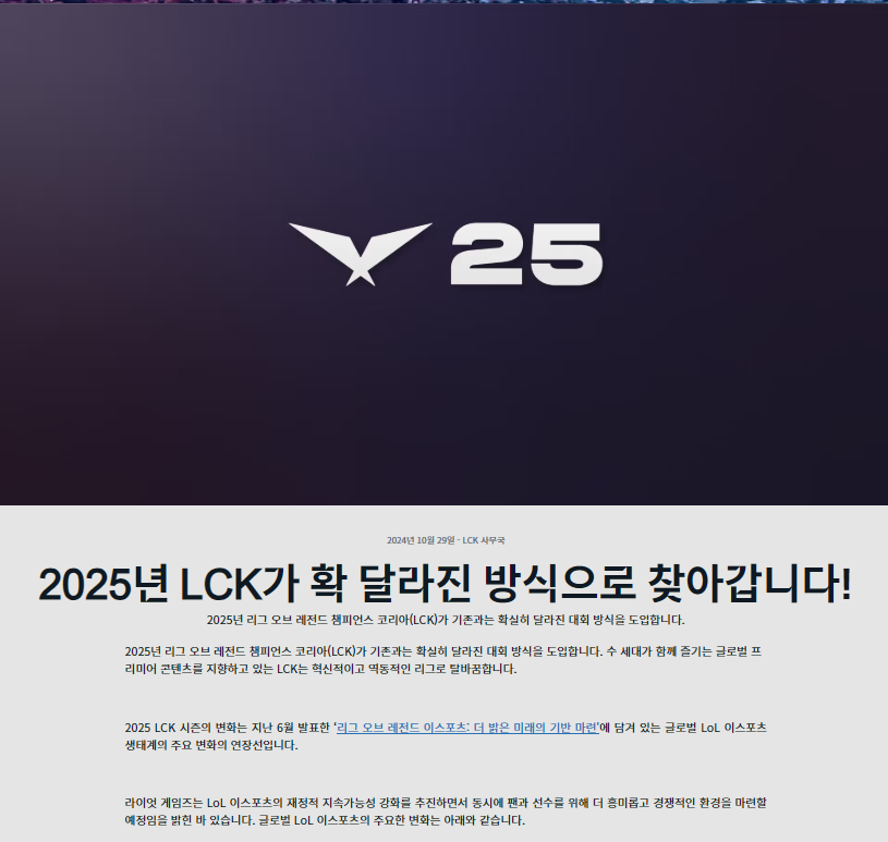 2025년 LCK 시즌은 몇 가지 주요 변경 사항과 함께 진행됩니다.