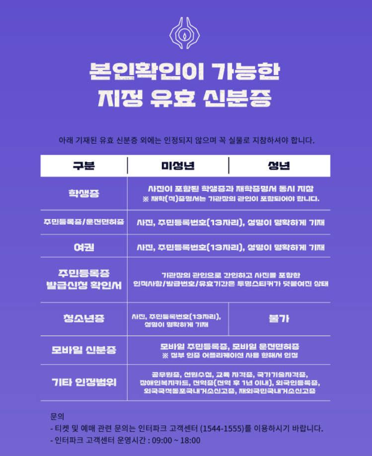 티켓은 현장에서 신분증 확인 후 수령 가능