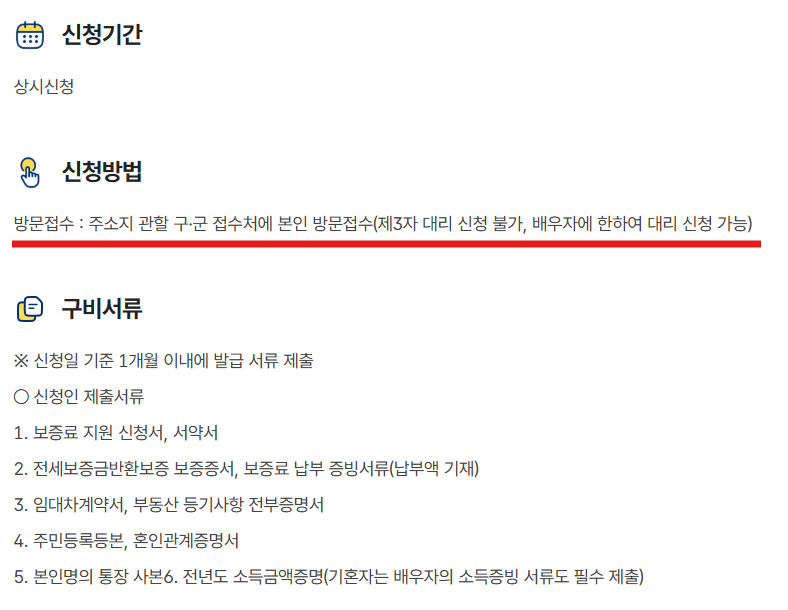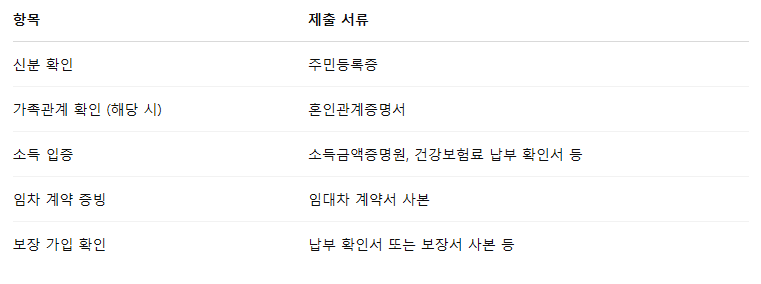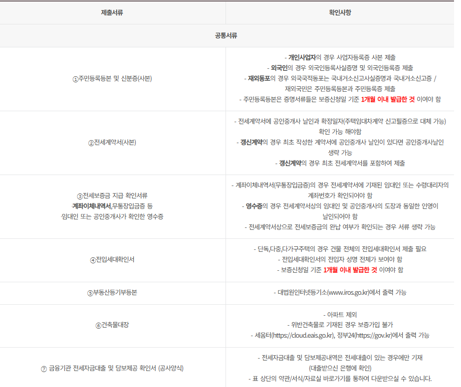 ☑️ 신청일 기준으로 HUG(주택도시보장공사), HF(한국주택금융공사), SGI(서울보장) 중 한 곳의 전세금 반환보장 가입 이력이 있어야 함