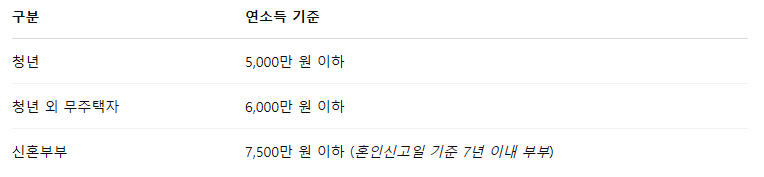 ⭕ 청년 외 무주택자 6,000만 원 이하