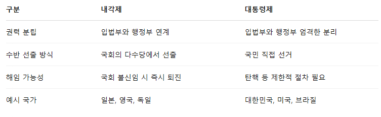 이처럼 내각제는 의회 중심의 정치 운영 체계로서, 정치적 책임성과 효율성을 동시에 추구하는 제도입니다.