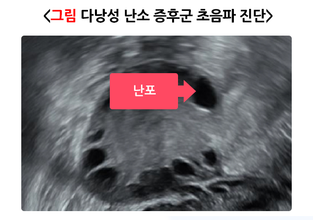 난소에 작은 난포(2~9mm)가 12개 이상 보이거나 난소의 부피가 10㎤ 이상인 경우