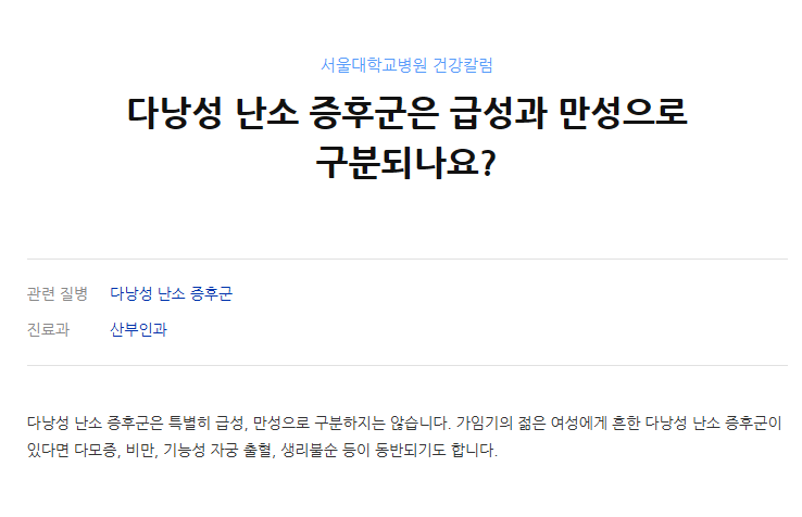 다낭성 난소 증후군(PCOS)은 많은 가임기 여성들에게 영향을 미치는 흔한 내분비 질환으로, 건강한 생활을 유지하기 위해서는 이를 정확히 이해하고, 적절한 관리가 필요합니다.