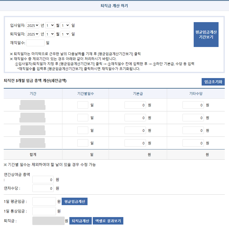 퇴직일 기준 전전달~직전달 3개월을 정확히 설정할 것