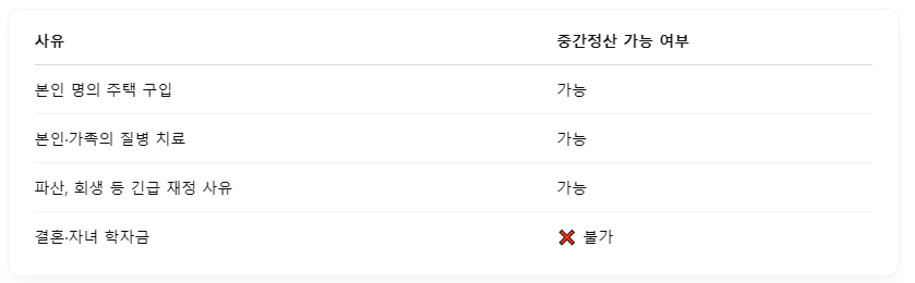 ✅ 퇴직금 중간정산 가능한 경우