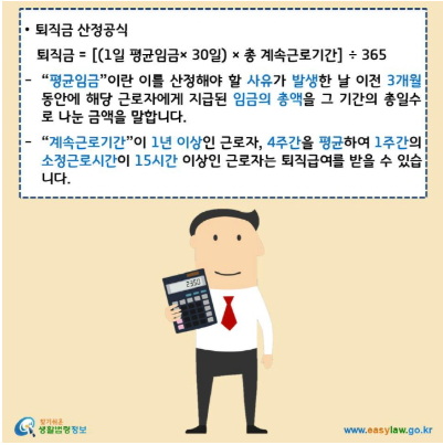 퇴직금은 아래의 공식에 따라 계산합니다.