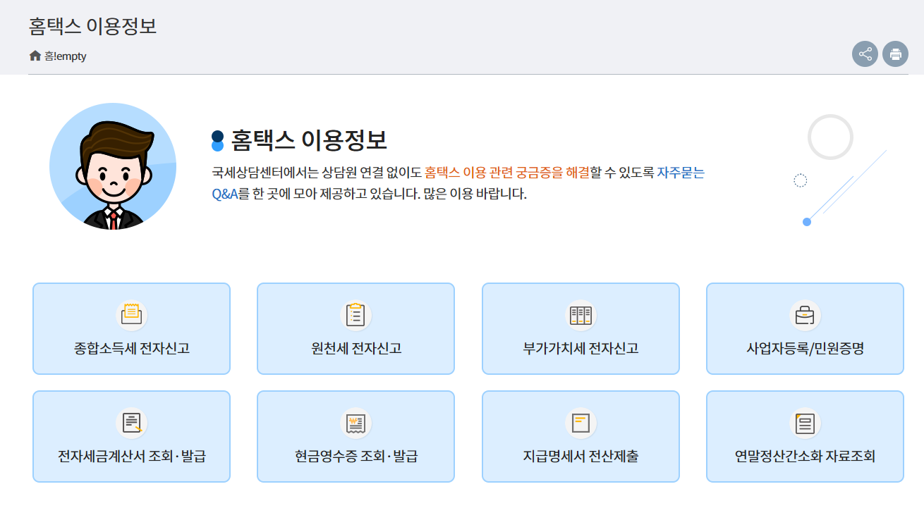 홈택스에서 제공하는 신고 도우미 서비스