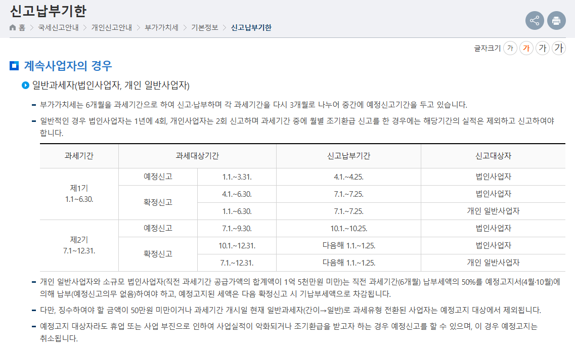 부가가치세 신고 시기