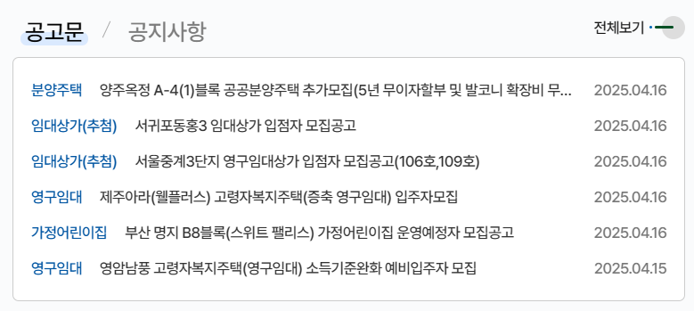 1. 공급 공고 확인