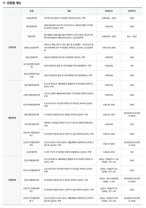 공공임대주택 유형별 소개