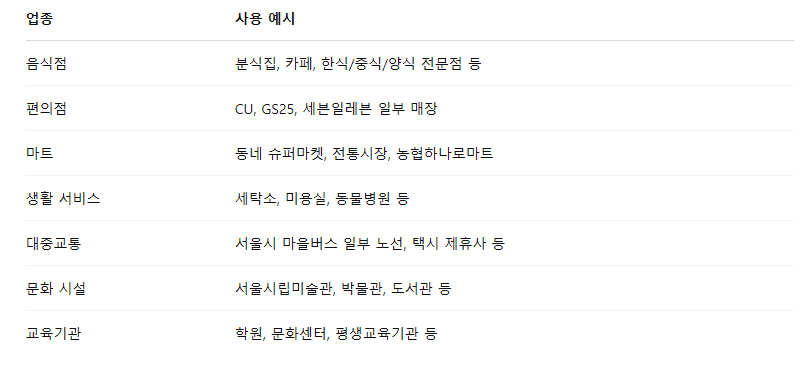 🏪 주요 사용 가능 업종