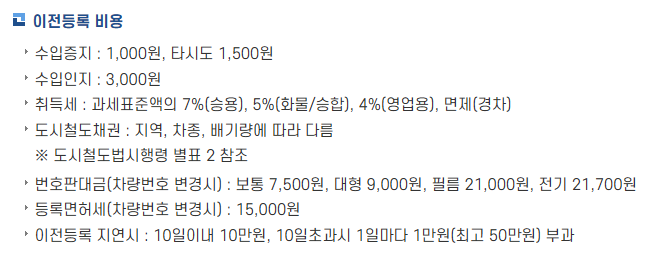 자동차 이전 등록과 동시에 몇 가지 세금을 납부해야 합니다.