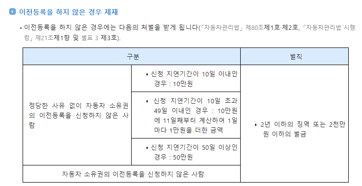 5일 초과 시 5만 원, 10일 초과 시 10만 원이라는 식으로 누적되므로 되도록 빠르게 등록 절차를 마무리하는 것이 좋습니다.