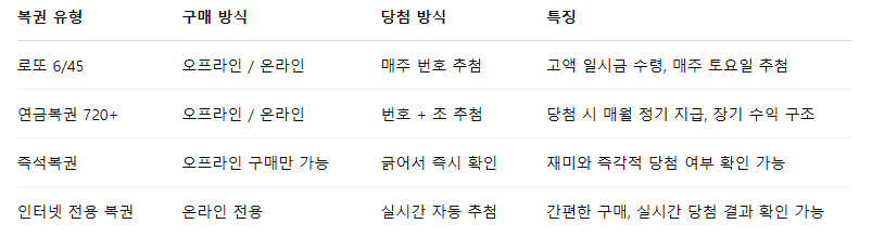 로또, 연금복권, 즉석복권: 모두 당첨일 기준 1년 이내 수령해야 함