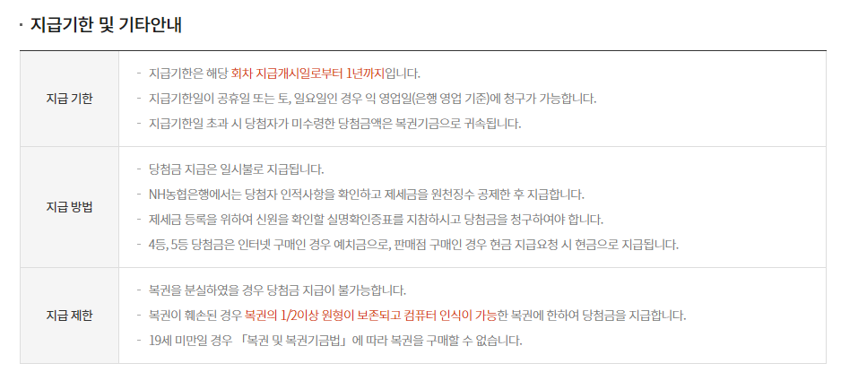 복권 수령 관련 세부 조건은 동행복권 공식 홈페이지 또는 농협 고객센터를 통해 확인 가능합니다.