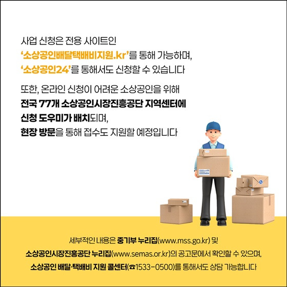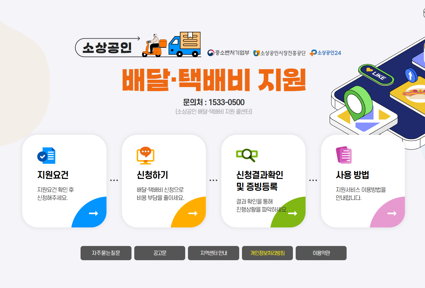 소상공인배달택배비지원 웹사이트 또는 소상공인24를 통해 온라인 신청을 할 수 있습니다.