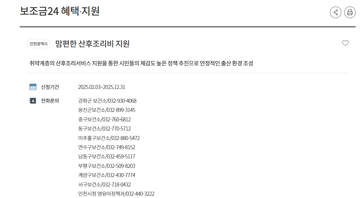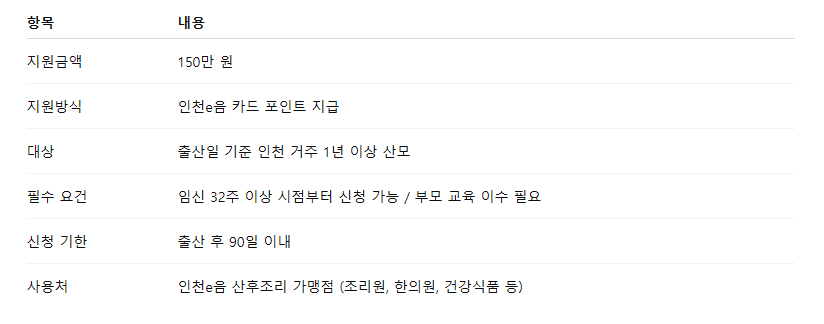 🔹 인천광역시 - ‘맘 편한 산후조리비’ 지원