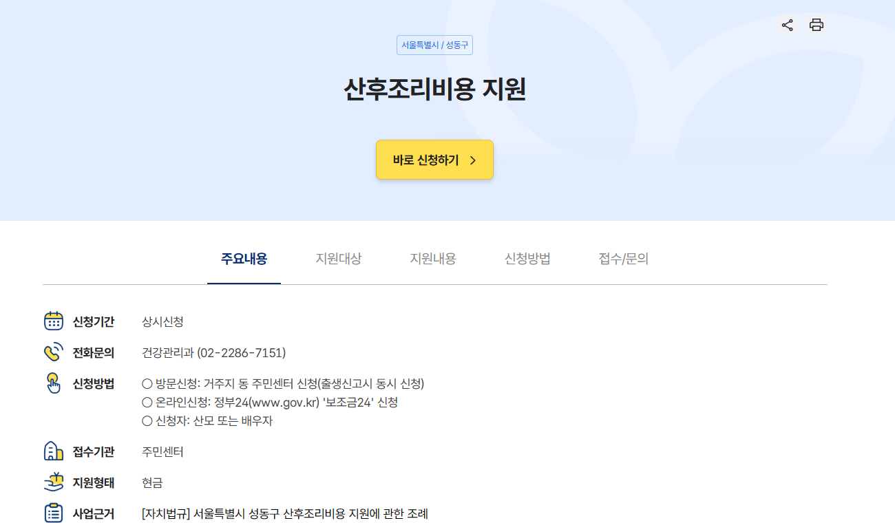 지금 거주 중인 지자체의 보건소나 복지 담당 부서 홈페이지를 확인하고, 출산과 동시에 지원 신청을 진행하시기 바랍니다.