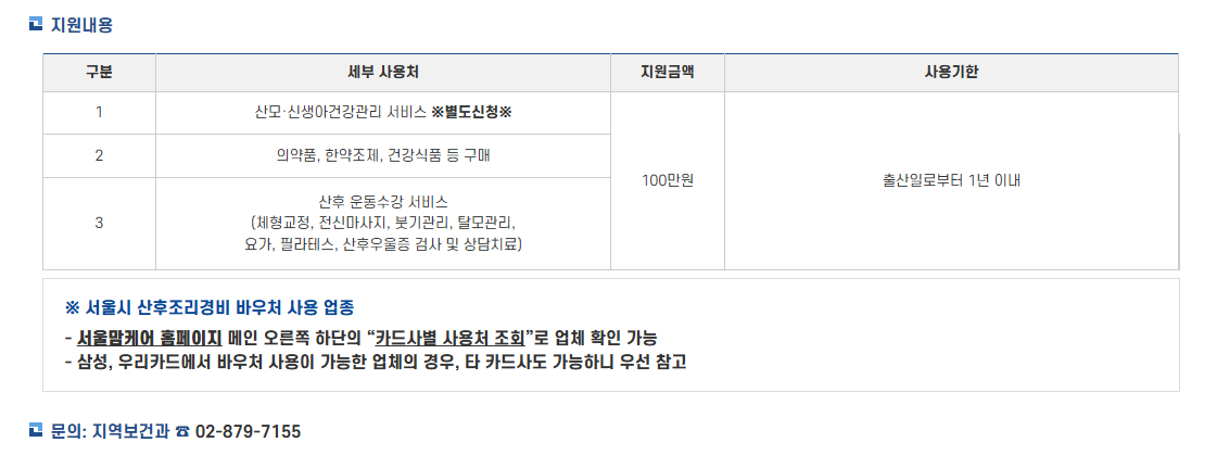 사용처 서울맘케어 가맹점에서 산후조리 관련 항목 사용