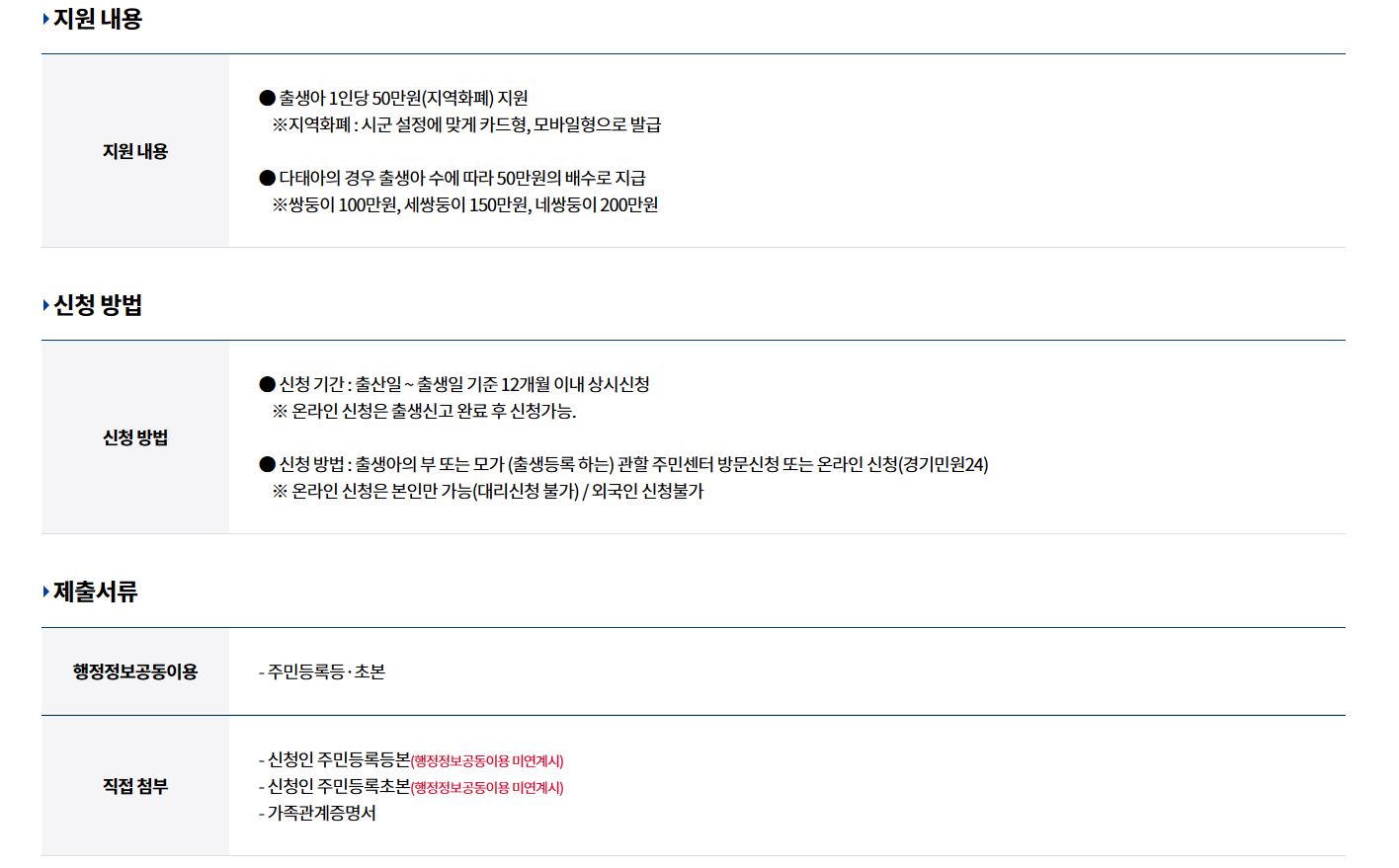 지원금액 50만 원 (쌍둥이: 100만 원)