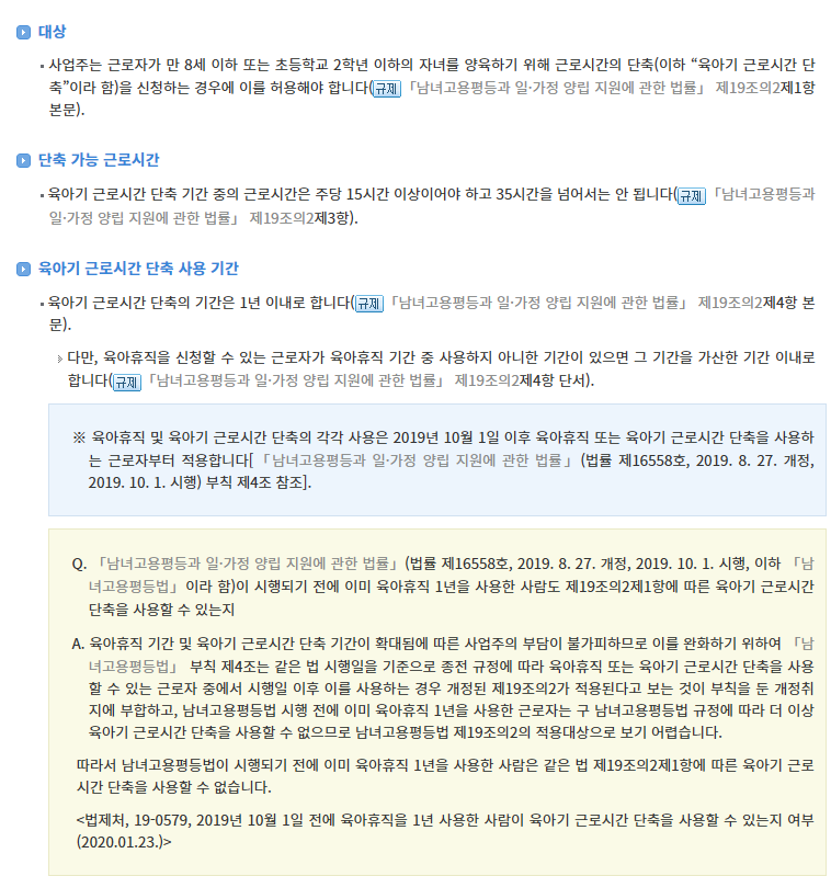 ※ 단축 기간은 최소 1개월 이상이어야 하며, 1일 최소 2시간 이상 단축 조건을 충족해야 합니다.