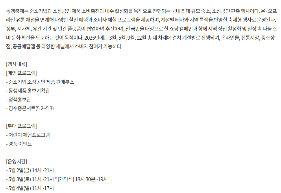 2025년 5월 ‘동행축제’는 단순한 쇼핑을 넘어, 국민 모두가 함께 웃는 착한 소비의 장입니다.