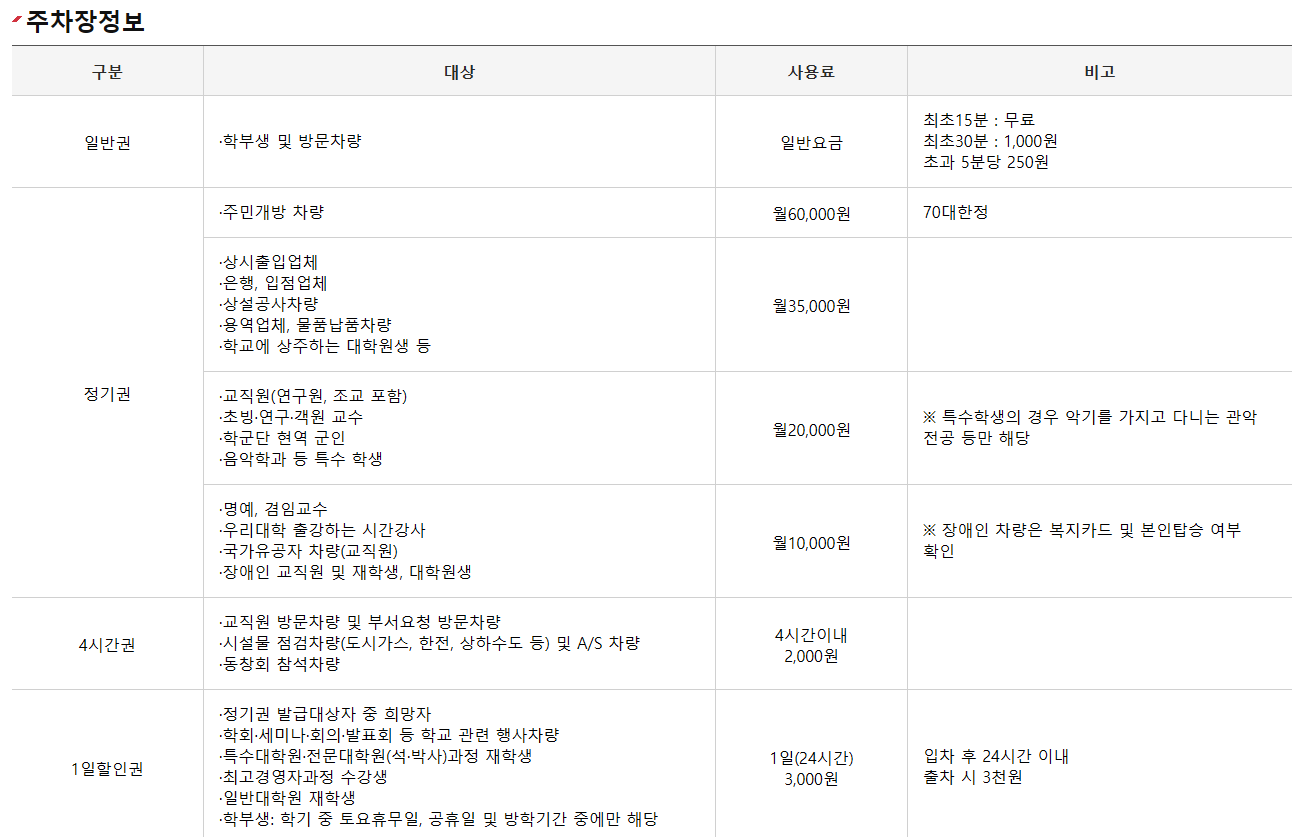 ✅특징: 학부생 및 방문차량 이용 가능, 정기권 제도 운영