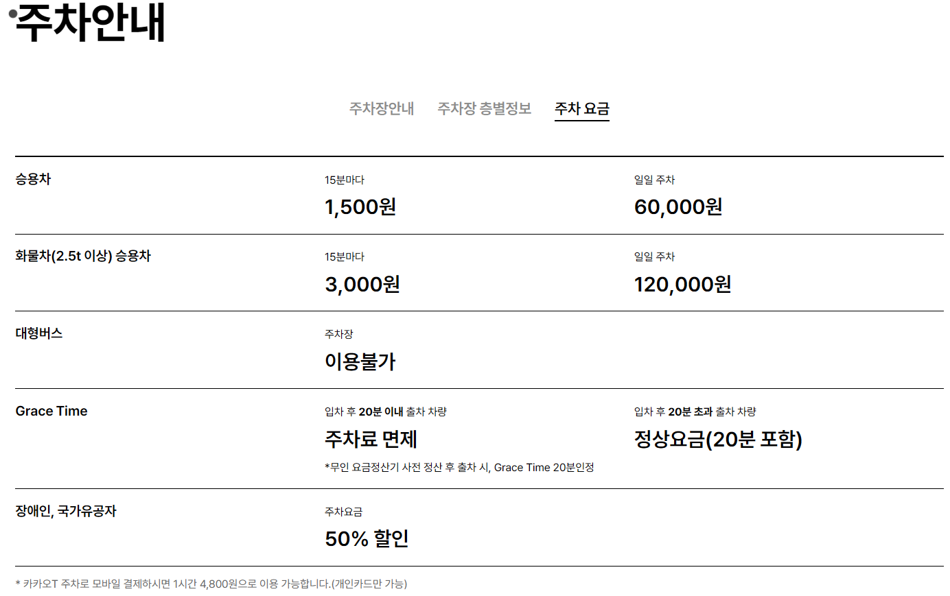 이용전 반드시 주차장 공식 페이지에서 정확한 정보를 다시 확인하세요!